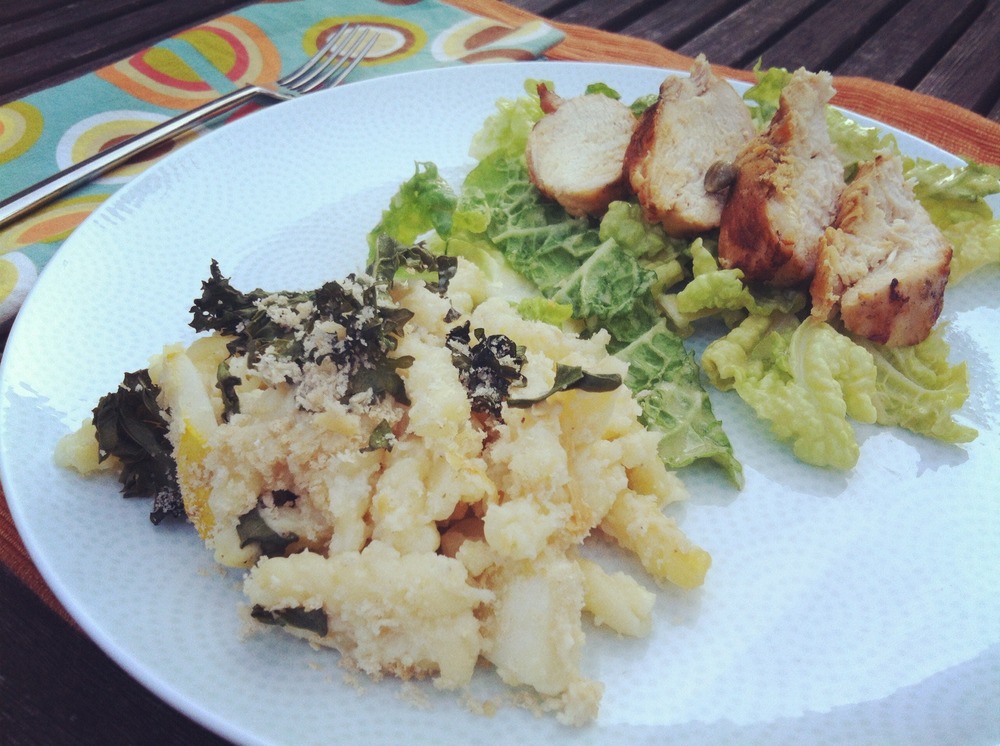 Category Cheap Eats, Comfort Foods, Health Conscious, Make ahead, Pasta, Vegetarian | Tags: cauliflower, cauliflower mac and cheese, chobani, healthy mac and cheese, how to keep up with my CSA, kale, panko bread crumbs, squash, yogurt in mac and cheese