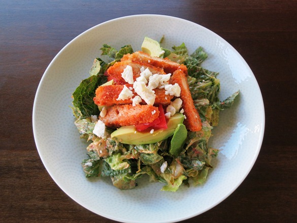 Buffalo Chicken Salad with Chipotle Dressing, Avocado, and Goat Cheese